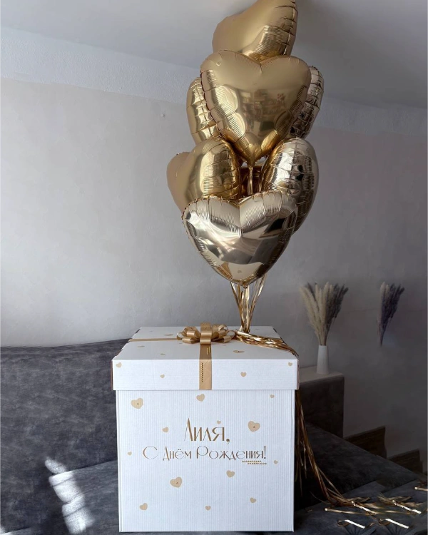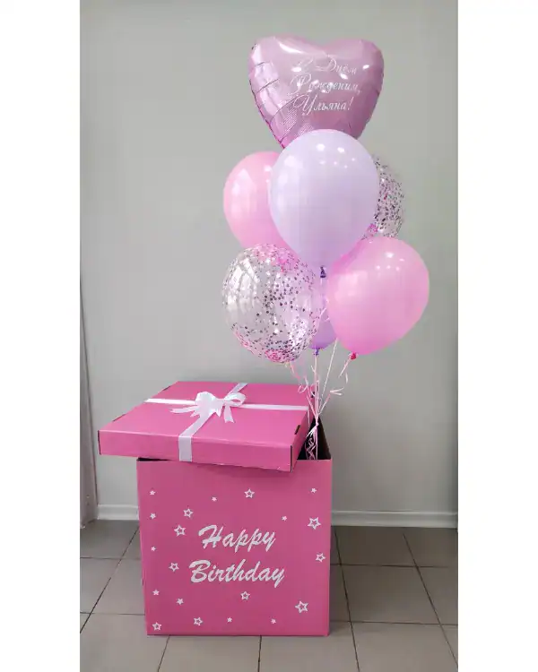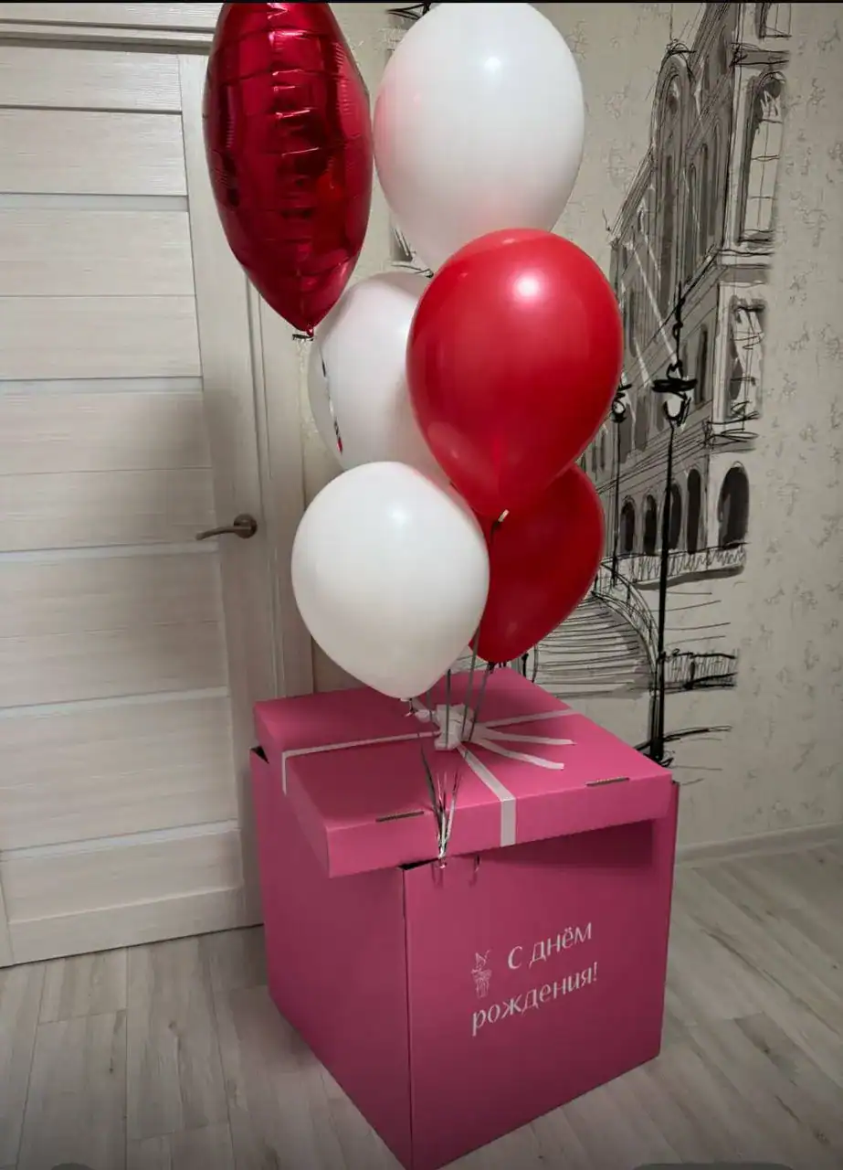 Если хочется вау-эффекта, стоит заказать коробку-сюрприз с шарами. При открытии коробки шары эффектно вылетают, создавая настоящий момент удивления и радости. Такой вариант легко купить в качестве подарка на день рождения, годовщину или просто чтобы сказать «спасибо».
